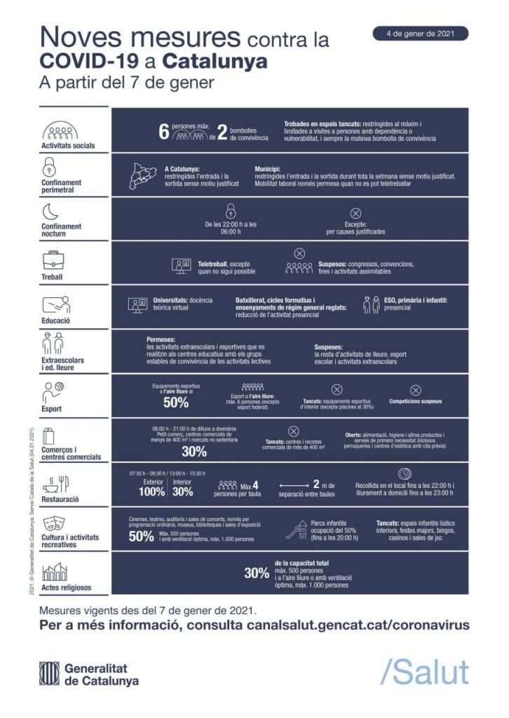 Infografia: Mesures per a la contenció de la COVID-19 aplicables a partir del 7 de gener a Catalunya